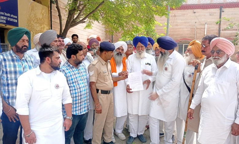 सिरसा रेलवे पुलिस थाना में स्थानीय अधिकारी को महानिदेशक रेलवे सुरक्षा बल अंबाला को संबोधित ज्ञापन सौंपते हुए।